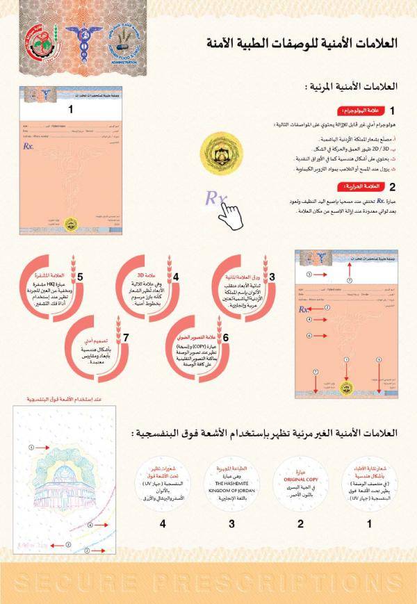 ويشار إلى أن المؤسسة أطلقت مطلع العام 2022 مشروع الوصفة الطبية ذات العلامات الأمنية الخاصة بصرف الأدوية المخدرة ومستحضراتها بالتعاون مع مديرية الأمن العام -إدارة مكافحة المخدرات ونقابتي الصيادلة والأطباء.