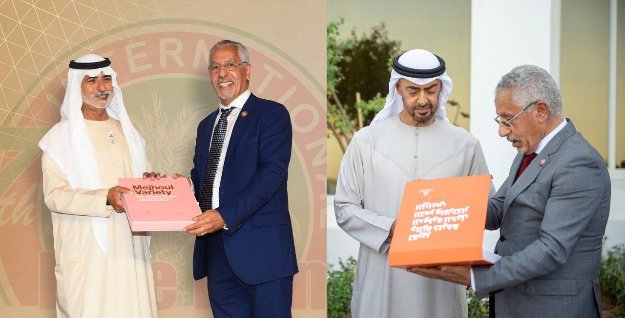 د. عبد الوهاب زايد يُهدي كتابي "المجهول دُرة التمور" إلى صاحب السمو الشيخ محمد بن زايد آل نهيان ويؤكد أن تمر "المجهول" صنف مغربي أصل