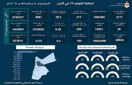 أعلنت وزارة الصحة الأحد تسجيل 28 وفاة و 3171 إصابة والفحوصات الإيجابية 6.4% خلال الأسبوع المنصرم