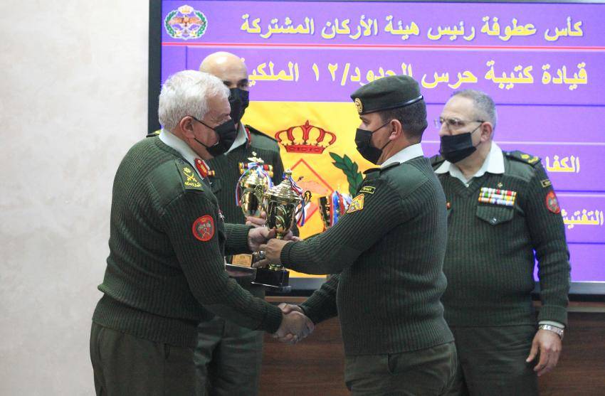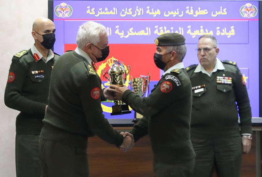 نيروز الإخبارية : رعى رئيس هيئة الأركان المشتركة اللواء الركن يوسف أحمد الحنيطي اليوم الأحد، في القيادة العامة للقوات المسلحة الأردنية – الجيش العربي، حفل تسليم الكؤوس للتشكيلات والوحدات الفائزة بكأس رئيس هيئة الأركان المشتركة لمختلف النشاطات لعام 2021.