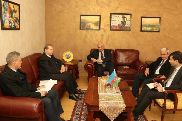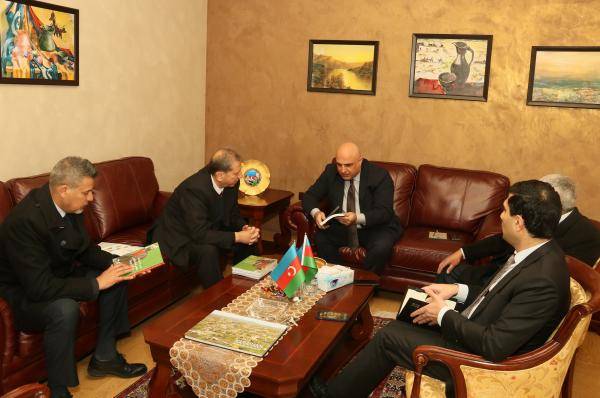 نيروز الإخبارية : اسقبل السفير الأذربيجاني في عمان الأستاذ إيلدار سليموف في مكتبة بمبنى السفارة رئيس جامعة عمان العربية الأستاذ الدكتور محمد الوديان وجرى خلال اللقاء الذي حضره سكرتير السفير الأذربيجاني سمير صلاحوف والمهندس رياض القضاة، ومن الجامعة كل من مدير المكتب الدولي والعلاقات الخارجية الدكتور مالك السرحان والسيد أنس كاسو من دائرة الإعلام والعلاقات العامة الفرص التعليمية التي تتيحها الجامعة للطلبة، والجهود التي تبذلها الجامعة للارتقاء بعملية التعليم والتعلم عبر تخصصاتها وكلياتها وصولا إلى التميز، فضلا عن تجسيد روح الريادة والإبداع لدى الطلبة، وإعداد كوادر مؤهلة ومدربة تلبي متطلبات وحاجات الأسواق العالمية والمحلية .