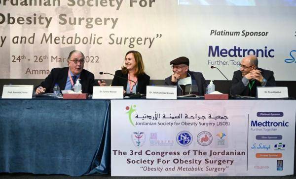 نيروز الإخبارية : لم يكن حدثا اعتياديا ما شهدته الساحة الطبية الاردنية الاسبوع الماضي بانعقاد المؤتمر الثالث لجراحة السمنة بحضور محلي وعربي وعالمي كبير ، ناقش على مدى ثلاث ايام كل ما يتعلق بأمراض البدانة والسمنة ومضاعفاتهما السلبية وآثارهما ، واخر ما توصلت اليه الممارسات الطبية العالمية فيما يخص جراحات السمنة وسبل معالجتها ومناقشة أكثر من 60 ورقة علمية متخصصة قدمها أطباء على سوية عالية في عالم الجراحة من داخل المملكة وكل من (أمريكا، بريطانيا ، المانيا، ايطاليا، اسبانيا، الهند، السعودية ، الامارات، البرازيل، تركيا)