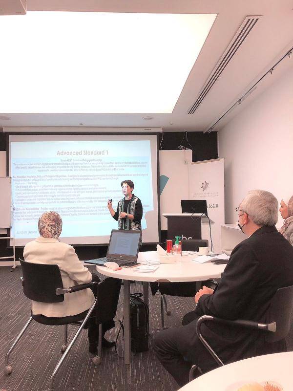 كما وناقشت الورشة عمليات تنفيذ معايير الاعتماد في كليات التربية في الجامعات الأردنية CAEP Process، وتحسين بيئة التعليم الجامعي، وكيفية تنفيذ برامج تدريبية لإعداد المعلمين في الأردن وفقاً للمعايير والممارسات العالمية.