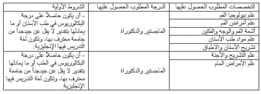 - الحاصل على درجة الماجستير من جامعة معترف بها وبتقدير لا يقل عن جيدجداً.