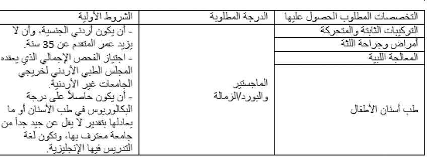 أعلنت جامعة الزرقاء عن رغبتها في ابتعاث عدد من المؤهلين للحصول على البورد / الزمالة في  بعض من التخصصات .