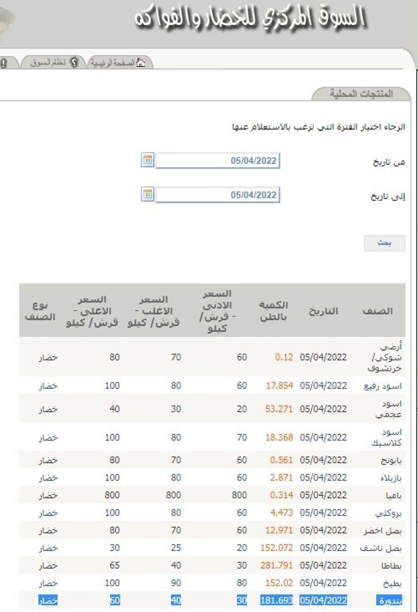 وأوضحت انه بالنسبة لمادة البندورة فبحسب نشرة سوق الخضار المركزي لهذا اليوم الثلاثاء بلغ أدنى سعر 30 قرشا والأعلى 60 قرشا والسعر الأغلب 40 قرشا وعليه تم تحديد السقف السعري بـ 60 قرشا للكيلو للمستهلك شامل ربح التاجر، وكذلك الحال بالنسبة للأصناف الأخرى التي تم تحديد سقوف سعرية لها.