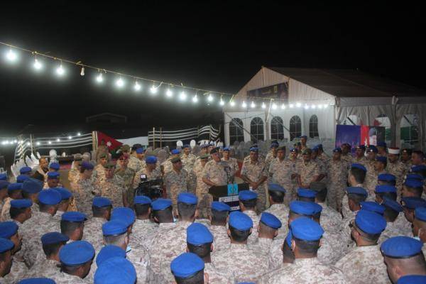 والتقى اللواء الركن الحنيطي مرتبات الكتيبة، ونقل لهم تحيات ومباركة جلالة القائد الأعلى الملك عبدالله الثاني بمناسبة حلول شهر رمضان المبارك، مبدياً اعتزازه بالمستوى المتميز والمعنويات العالية التي يتمتعون بها.