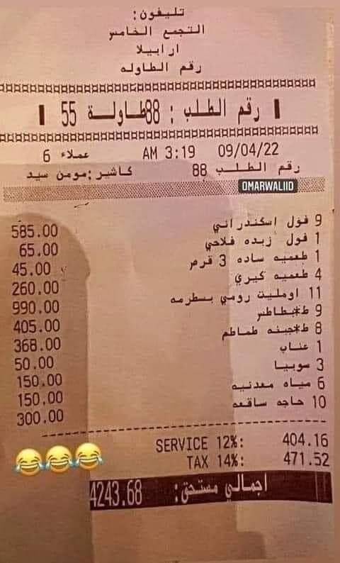 في ظل الظروف الاقتصادية التي يمر بها الشعب المصري، سادت حالة من الجدل على مواقع التواصل الاجتماعي بسبب تداول صورة من فاتورة سحور في أحد المطاعم بالتجمع الخامس والتي بلغ سعرها أكثر من 4 آلاف جنيه وهو رقم كبير جدا.