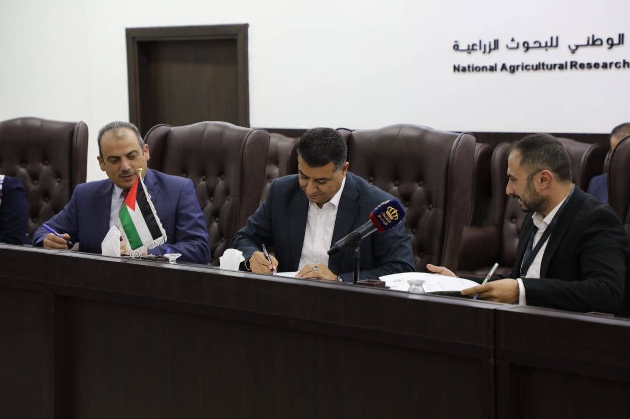 رعى وزير الزراعة المهندس خالد الحنيفات حفل توقيع ست اتفاقيات في حاضنة الابتكار وريادة الأعمال الزراعية في المركز الوطني للبحوث الزراعية.