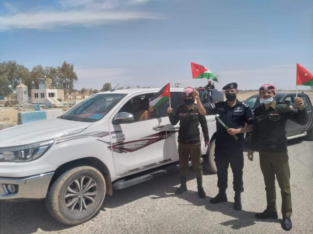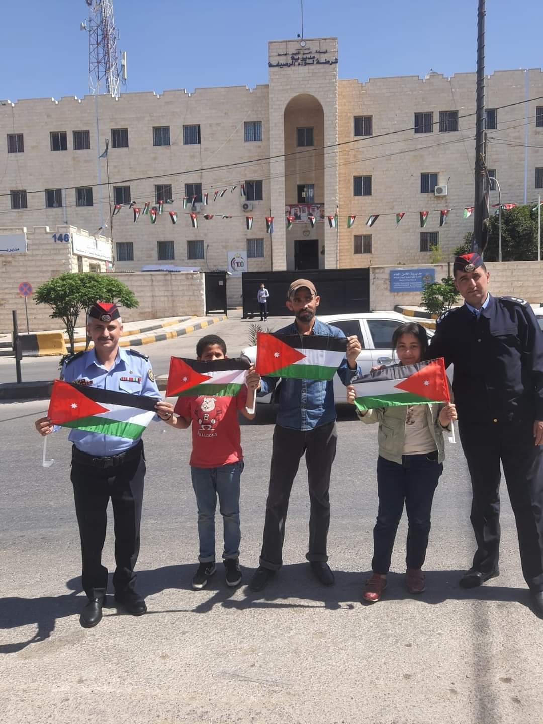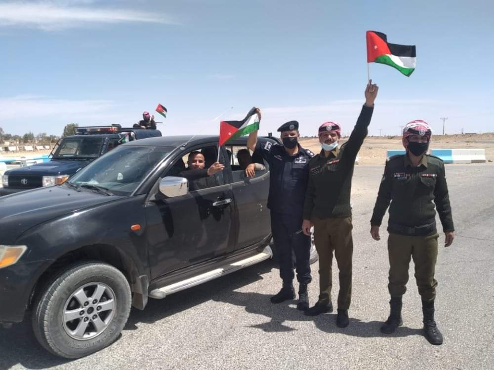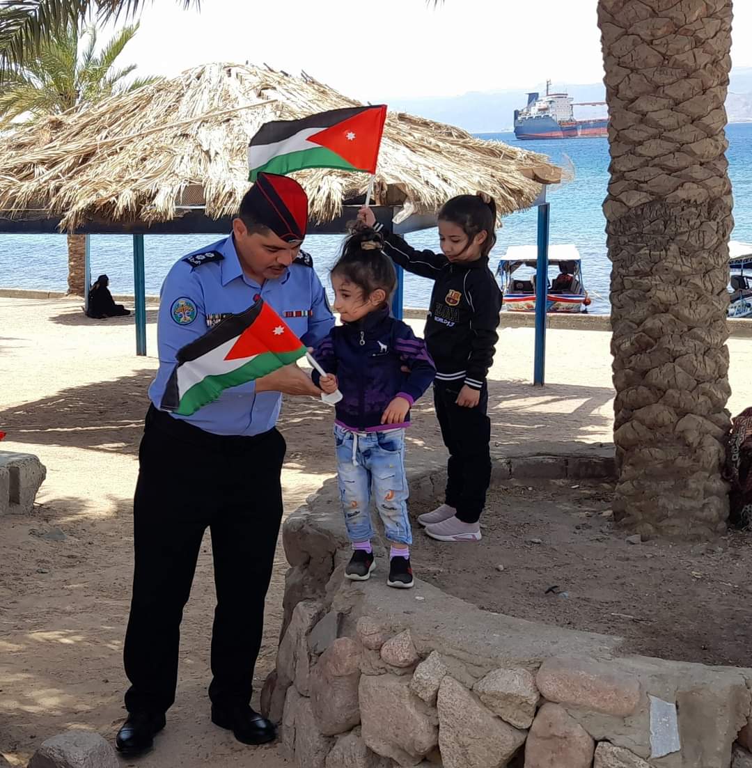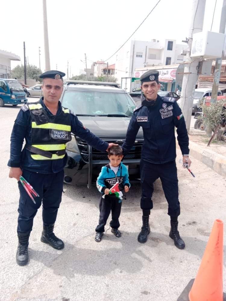أهدى ضباط وأفراد من مديرية الأمن العام اليوم السبت المارة والمركبات في الطرقات ، العلم الأردني ،وذلك احتفاءا باليوم الوطني للعلم الأردني .