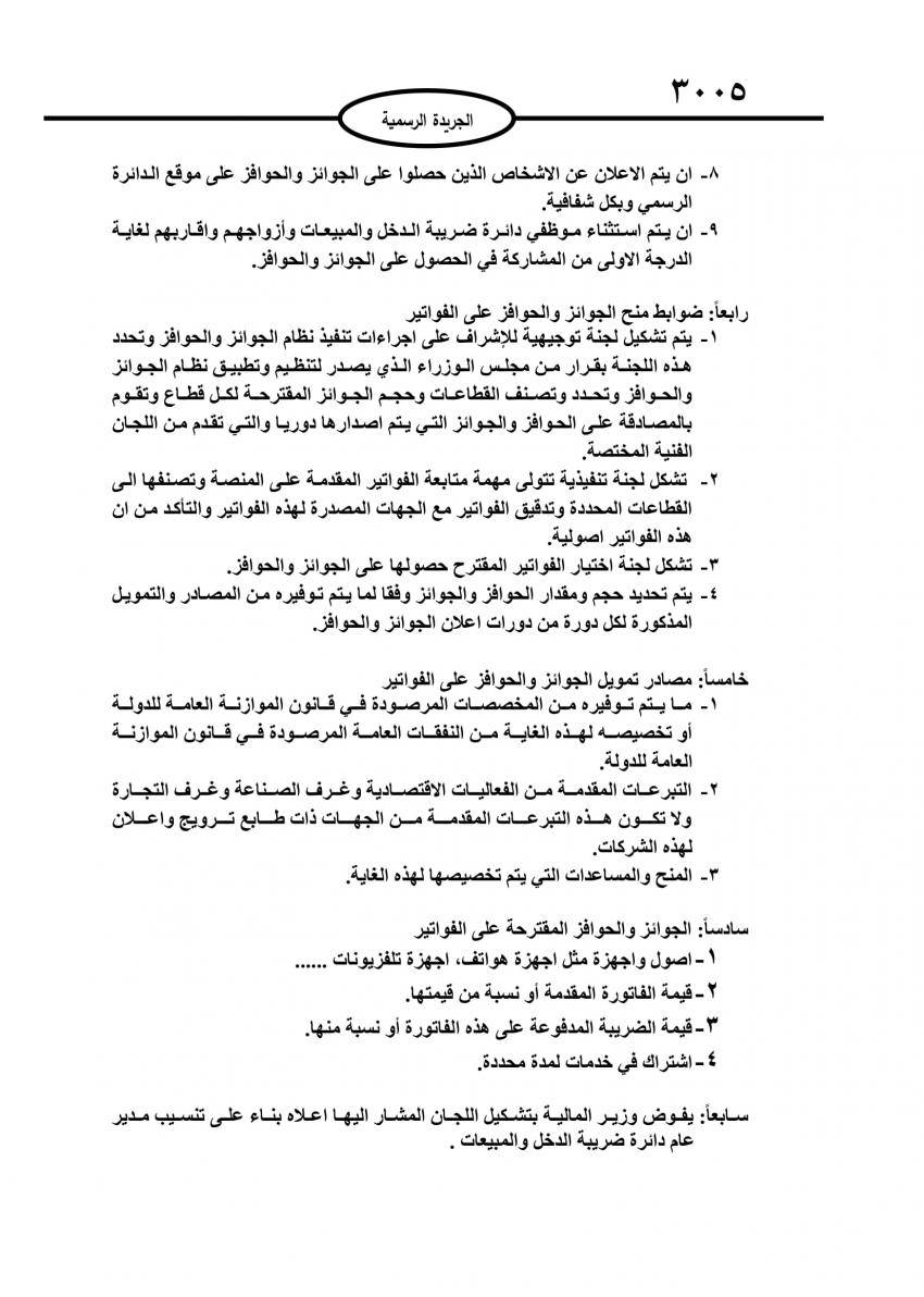 صدور أسس حوافز الفواتير في النظام الضريبي بالجريدة الرسمية