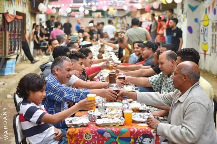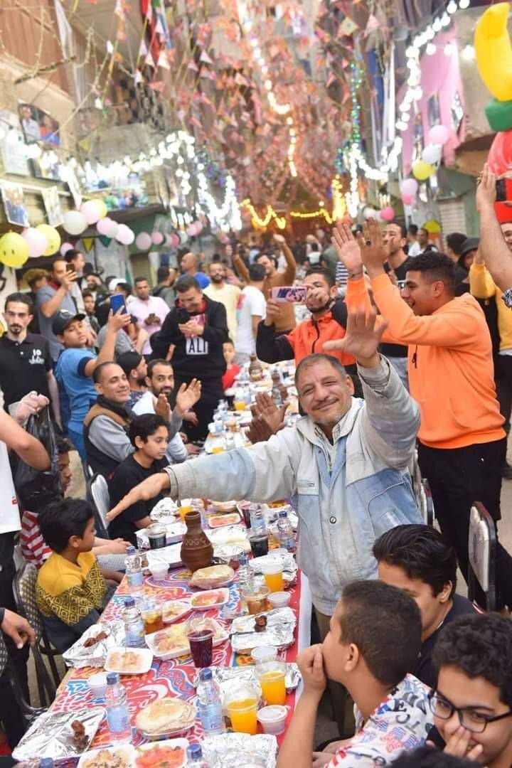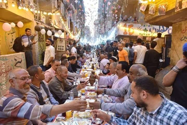 ويجتمع الأهالي على المائدة  وكأنها عائلة واحدة، ولكن بسبب جائحة فيروس كورونا توقفت هذه المائدة لمدة عامين، ولكنها عادت أمس بعد غياب لينظم الأهالي مائدة اجتمع عليها الآلاف، لتكون ضمن الأطول التي يتم تنظيمها في القاهرة.