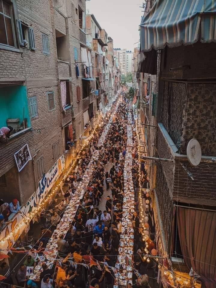 نظم أهالي حي المطرية وعزبة حمادة في العاصمة المصرية القاهرة أكبر مائدة إفطار جماعي، في مشهد تكاتف فيه جميع شباب الحي لتحضير مائدة فاق طولها الـ1000 متر.
