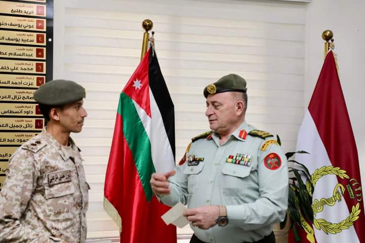 كرم مدير عام الخدمات الطبية الملكية العميد الطبيب يوسف جمال زريقات اليوم الاثنين الملازم/١يزن الزعبي من مرتب قيادة معسكر الخدمات الطبية الملكية لعثوره على مبلغ مالي قيمته ٣٨٠ دينار قام بتسليمه على الفور لمدير مركز القلب من باب الامانة والصدق والحرص على المؤسسة التي يعمل فيها.