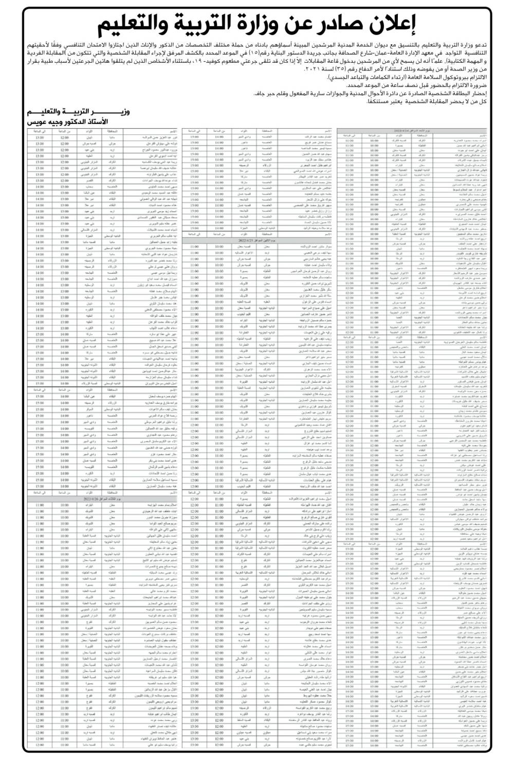دعت وزارة التربية والتعليم بالتنسيق مع ديوان الخدمة المدنية، عددا كبيرا من المرشحين الذين اجتازوا الامتحان التنافسي؛ لإجراء المقابلة الشخصية.