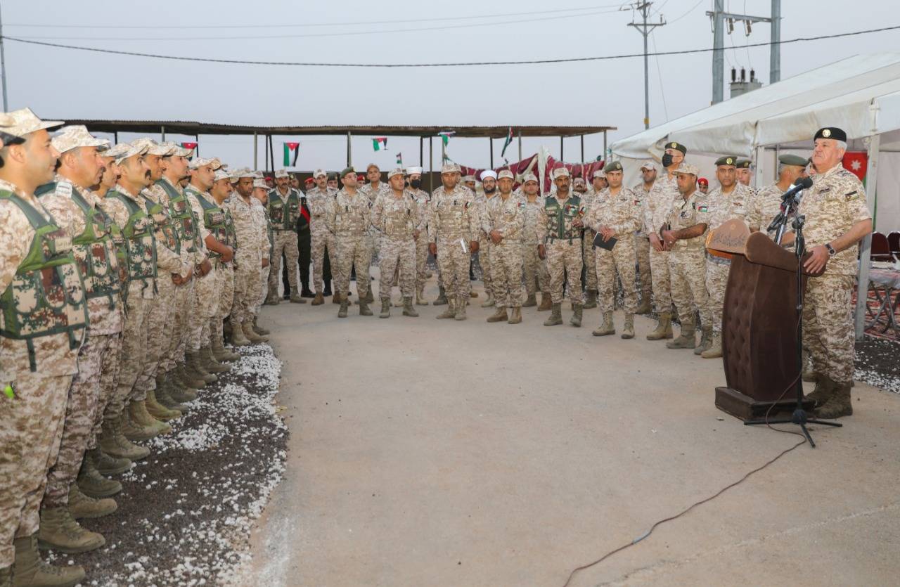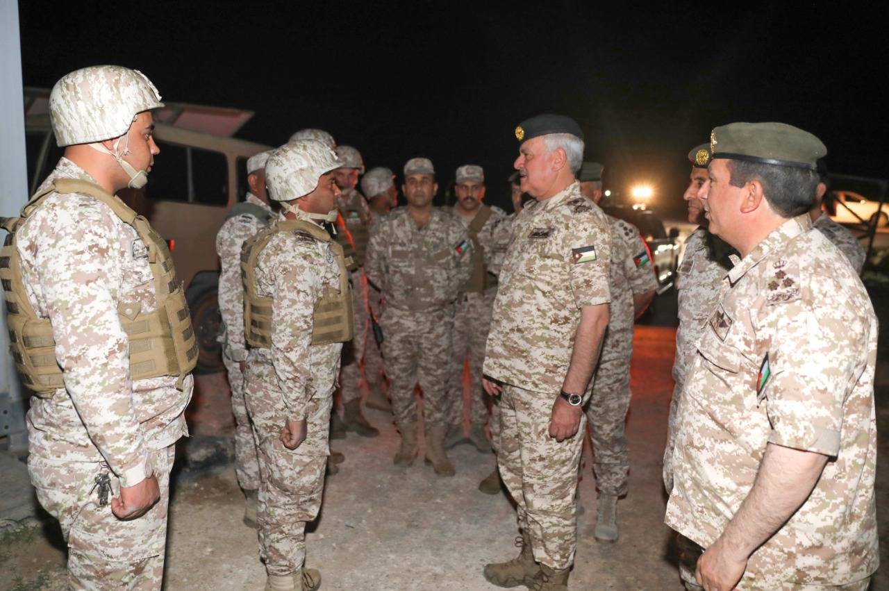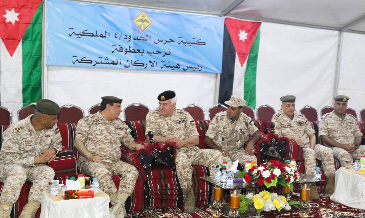 وجال رئيس هيئة الأركان المشتركة على واجهة الكتيبة، واطلع على آلية عمل الأبراج وأجهزة المراقبة المستخدمة في الكتيبة، معرباً عن ثقته بقدرات منتسبي وحدات حرس الحدود بالوقوف بالمرصاد أمام كل من تسول له نفسه المساس بالأمن الوطني الأردني ومقدراته والوقوف صفاً واحداً في وجه كل مَن يحاول العبث بأمنه واستقراره بكل قوة وحزم.