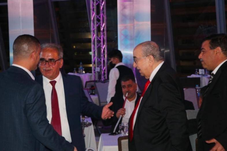 رئيس مجلس إدارة مركز حماية وحرية الصحفيين، راعي الأمسية، دولة السيد طاهر المصري صعد إلى منصة الاحتفالية لتكريم الجميع، وأثنى على جهودهم في دعم حرية التعبير والإعلام.