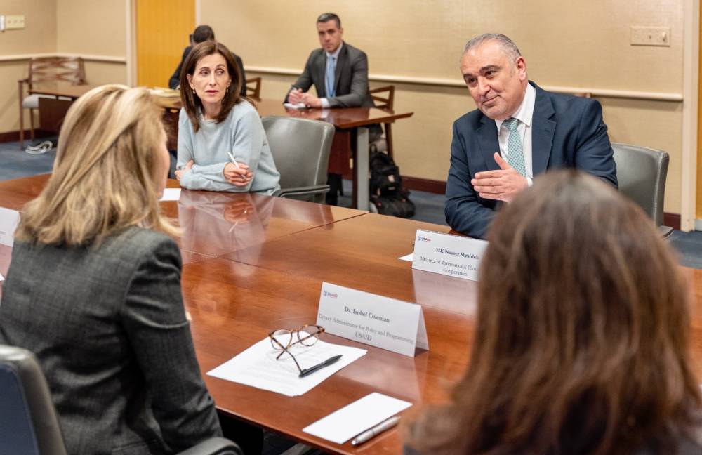 بحث وزير التخطيط والتعاون الدولي ناصر الشريدة في واشنطن مع نائب مدير الوكالة الأميركية للتنمية الدولية إيزوبيل كولمان سبل دعم جهود الأردن الإصلاحية والتنموية وأولويات ومجالات التعاون المستقبلية بين البلدين الصديقين في القطاع التنموي وفي قطاعات المياه والتنمية الاقتصادية والتعليم والرعاية الصحية، فضلا عن دعم الشباب والمرأة.