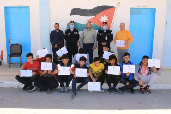 رئيس مركز أمن المدينه في مديرية شرطة المفرق يُخرج المشاركين في دورة أصدقاء الأمن العام ضمن مشروع بنيان والتي عقدت لدى  مدرسة المنصورة الثانوية للبنين.