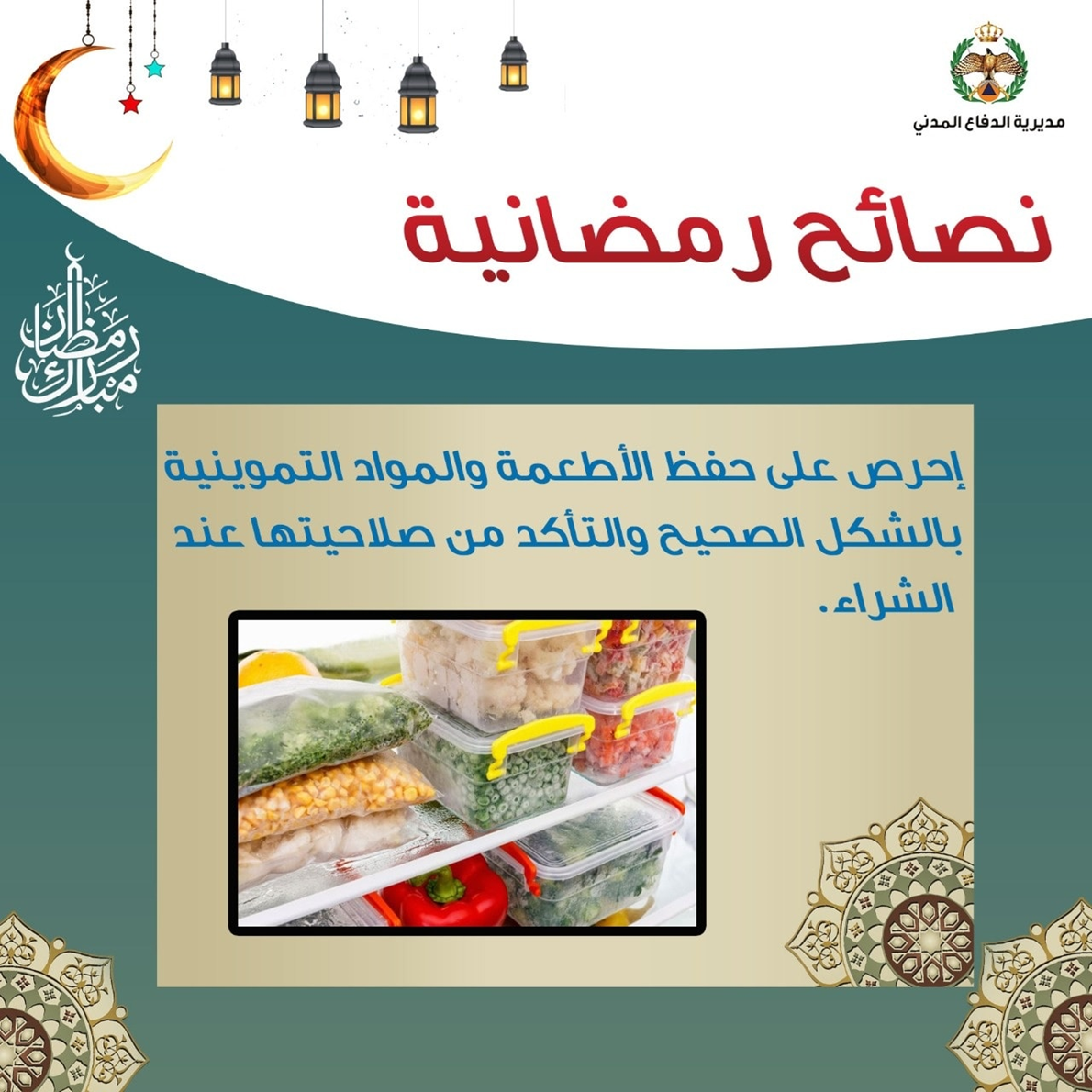 : وجهت مديرية الدفاع المدني نصيحة حول سلامة الغذاء في شهر رمضان المبارك.