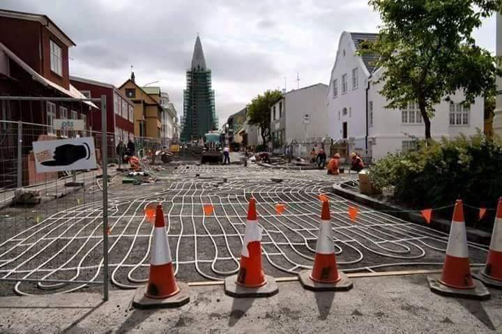 ايسلندا تباشر بمشروع شبكة تدفئة للشوارع وذلك لاذابة الثلوج والصقيع وحفاظا على سلامة المواطنين والمقييمين .