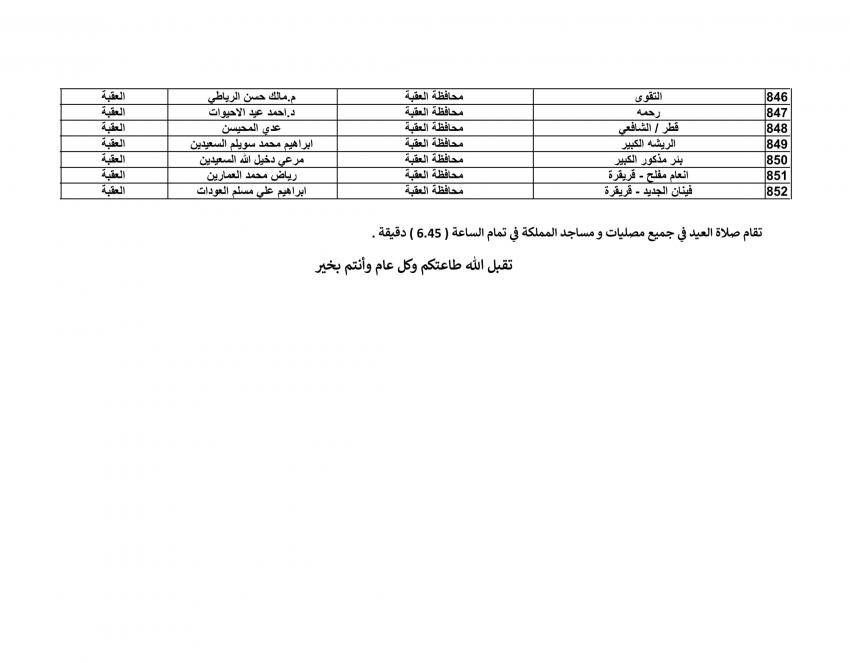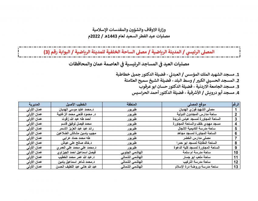 وذكرت الوزارة، في بيان صحفي، اليوم الخميس، أن مصلى العيد الرئيسي في المملكة سيكون في المدينة الرياضية في العاصمة عمّان – بوابة رقم (3).