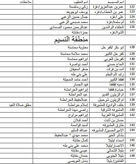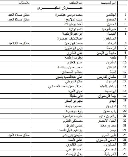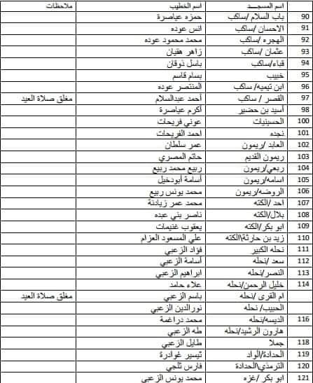 علما أنه سيتم إغلاق بعض المساجد في محيط المصليات أعلاه...،وبعض المساجد المتقاربة، وذلك على النحو التالي,: