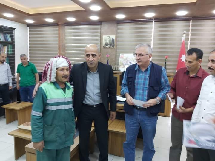 كرم رئيس بلدية جرش الكبرى عددا من عمال الوطن من مختلف المديريات والأقسام في بلدية جرش الكبرى بحضور كوادر الشرطة المجتمعية  في جرش والمدير التنفيذي م. علي شوقة و عدد من المدراء و رؤساء الأقسام.