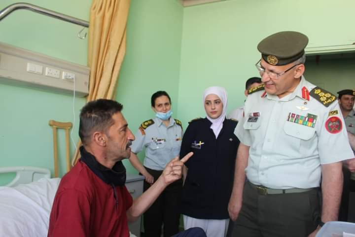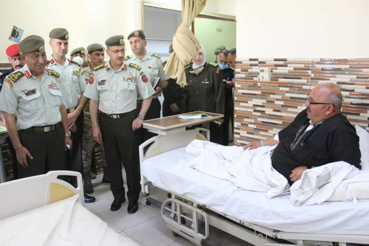 زار عدد من كبار ضباط القوات المسلحة الأردنية - الجيش العربي اليوم الإثنين، جميع المستشفيات العسكرية التابعة لمديرية الخدمات الطبية الملكية في مختلف محافظات المملكة، ونقلوا للمرضى تهنئة وتحيات القيادة العامة للقوات المسلحة بمناسبة عيد الفطر السعيد، وتمنياتها لهم بالشفاء العاجل.