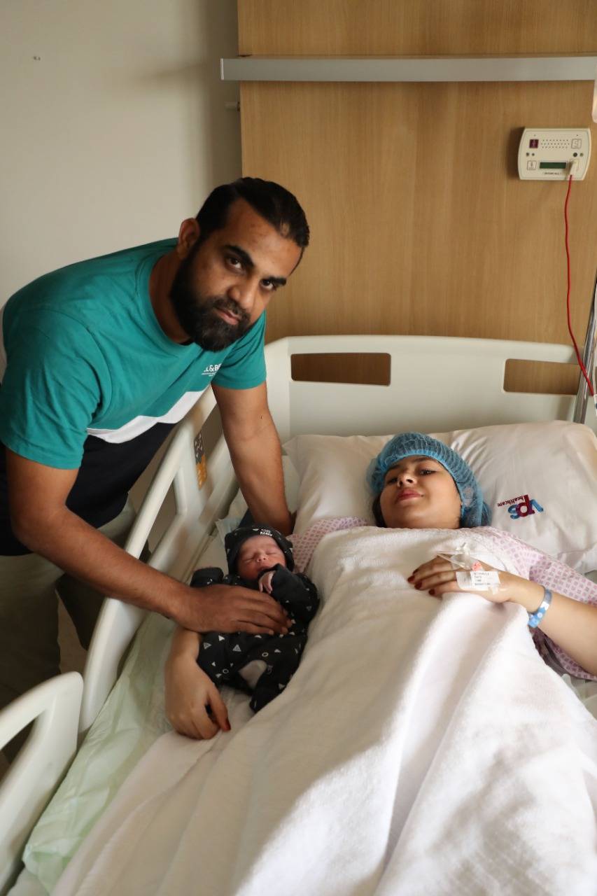 واستقبلت سابا عرفان ، 25 سنة ، وعرفان خان ، 35 سنة ، طفلهما الثالث شمير خان في منتصف الليل بوزن 2.7 كجم. وقد تمت الولادة بواسطة الدكتور فادي جورج هاشم استشاري أمراض النساء والتوليد بمستشفى برجيل.