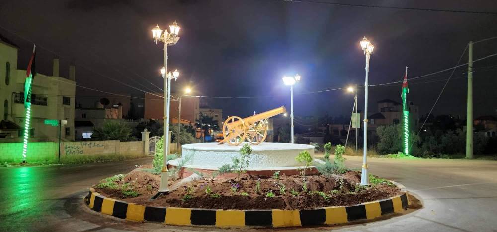 بكلفة بلغت 1400 دينار بلدية الرمثا تنجز دوار باقل التكاليف وتطلق عليه اسم موسى المدفع