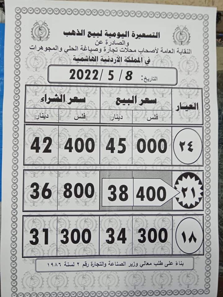 ويشمل التقريــر أسعار المعدن عيارات ( 24، 21، 18) ، كونها الأكثر تداولا في الأردن.