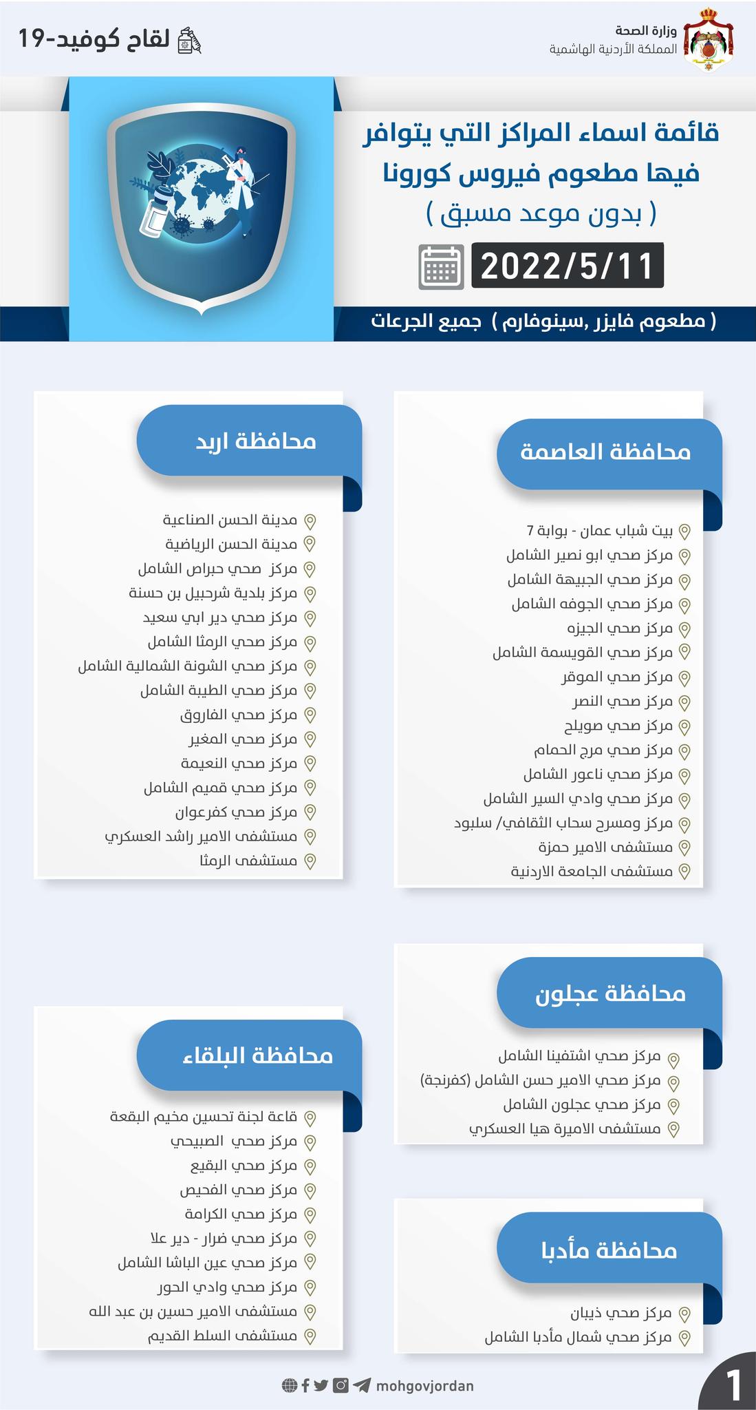 بالاسماء ...مراكز يتوافر فيها مطعوم كورونا الأربعاء
