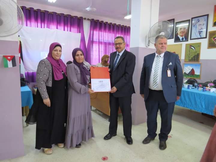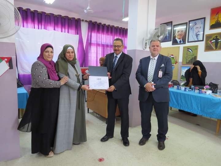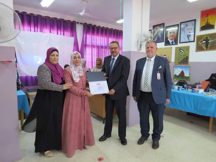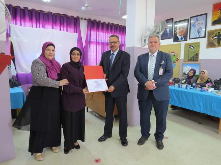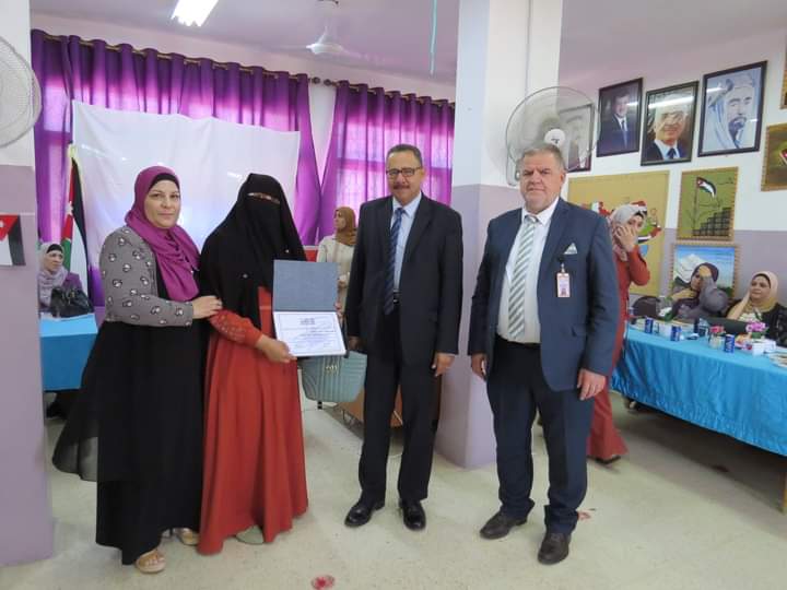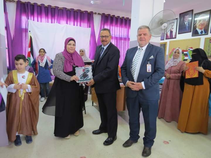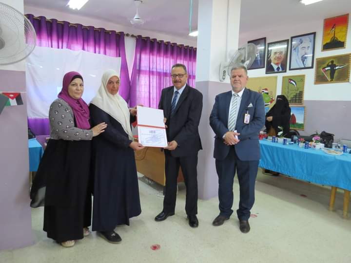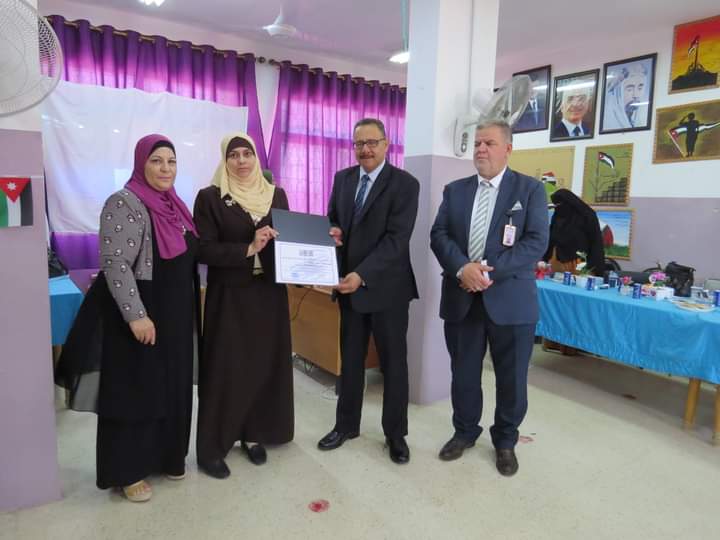 مديرة المدرسة السيدة وفى المستريحي قدمت درع تقدير لعطوفة مدير التربية والتعليم، ومدير الشؤون التعليمية والفنية، تقديراً لجهودهم وتعاونهم مع مدارس اللواء.