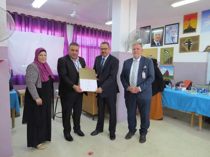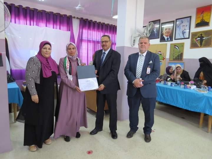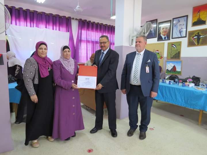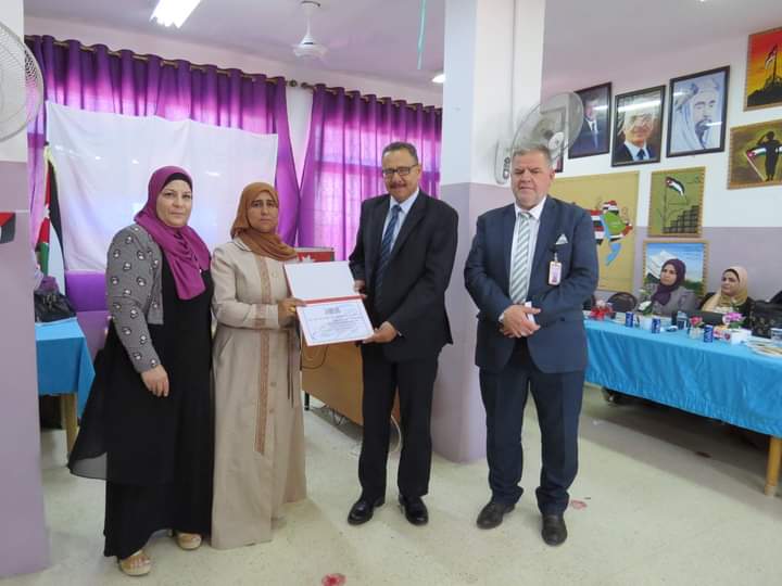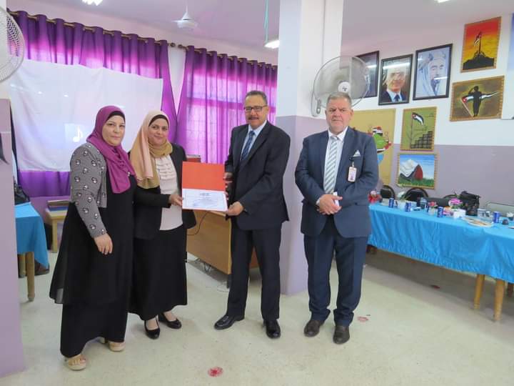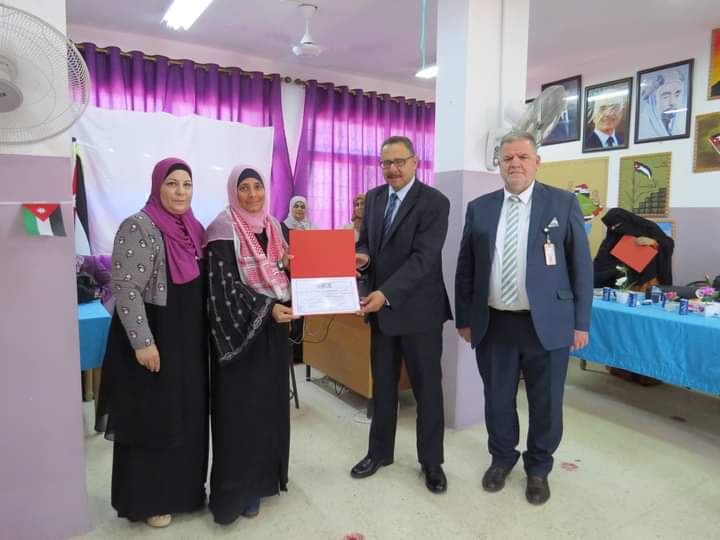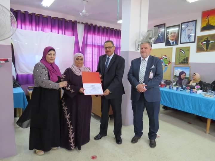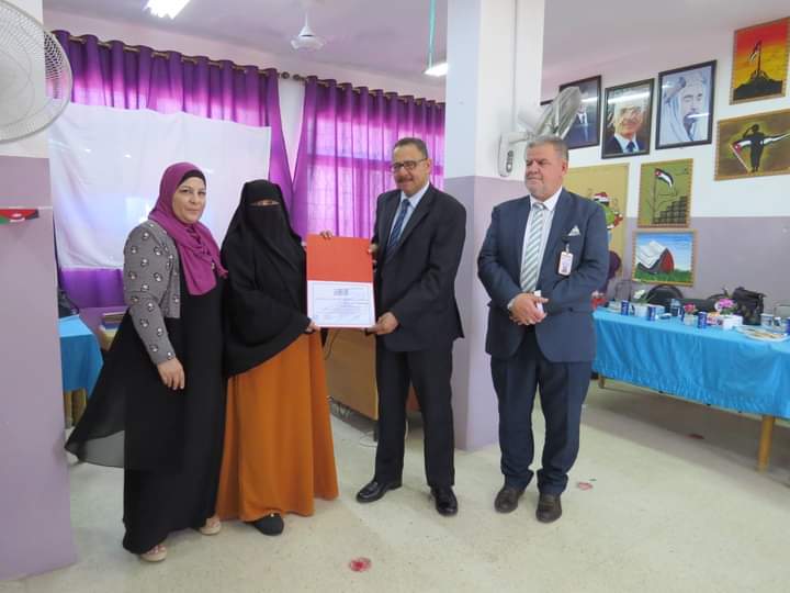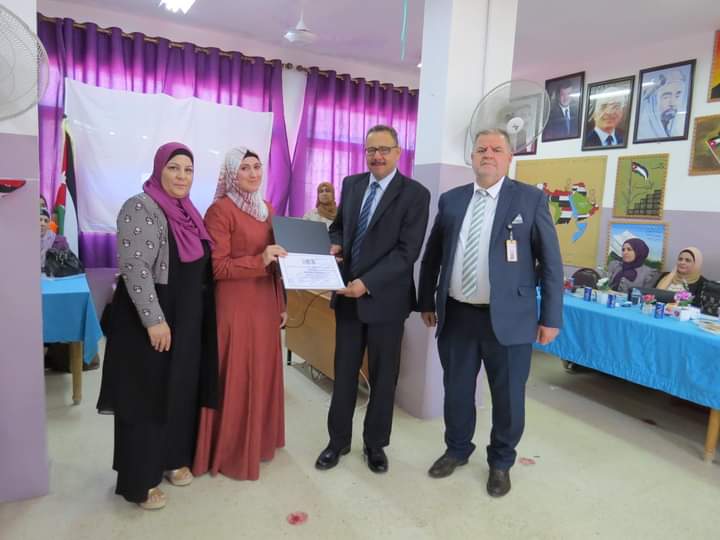 مديرة المدرسة السيدة وفى المستريحي قدمت درع تقدير لعطوفة مدير التربية والتعليم، ومدير الشؤون التعليمية والفنية، تقديراً لجهودهم وتعاونهم مع مدارس اللواء.