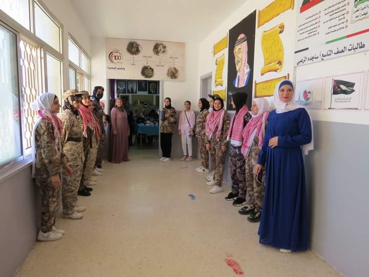 وألقت مديرة المدرسة السيدة وفى المستريحي كلمة رحبت فيها بالحضور، وتحدثت عن معركة الكرامة وعن قادة وجنود القوات المسلحة الأردنية البواسل الذين قدموا التضحيات بصبر وإرادة وعزيمة في سبيل الحفاظ على التراب الأردني الطاهر، وزرع القيم النبيلة في نفوس الطالبات.
