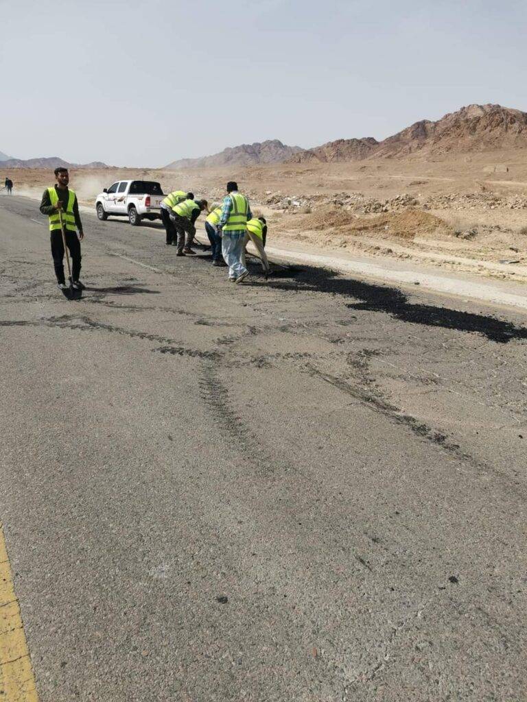 قال مدير أشغال العقبة المهندس خالد العمرو أن كوار اشغال العقبة باشرت في تنفيذ أعمال صيانة روتينية لاجزاء من طريق القويرة العقبة لحين طرح عطاء صيانة شامل من قبل الوزارة يشمل أعمال قشط الطبقة الاسفلتية المتضررة وإعادة تأهيلها من جديد .