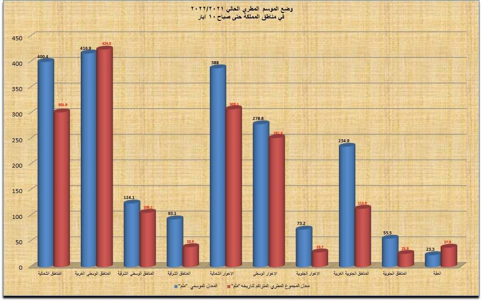 وأكد آل خطاب، أن الموسم المطري الحالي لا يزال ضعيفاً بالمجمل على مستوى المملكة مقارنة بالمواسم العشرة الأخيرة نظراً لما تشكله مساحة المناطق الجنوبية والشرقية من مساحة المملكة والتي كان فيها الأداء المطري فيها خلال هذا الموسم ضعيفاً.