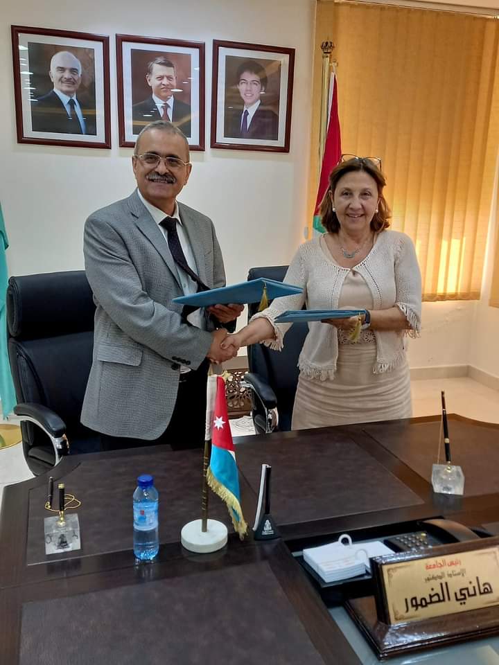 استقبل رئيس جامعة آل البيت  الأستاذ الدكتور هاني الضمور سفيرة مملكة إسبانيا لدى الأردن السيدة آرانثاثو بانيون دابالوس، بصفتها مُمثلةً عن الوكالة الإسبانية للتعاون الدولي والتنمية AECID ، لتوقيع اتفاقية تعاون مشترك ما بين الجامعة والوكالة، لدعم دراسات اللغة الإسبانية في الجامعة والمُساهمة في ترسيخ وتطوير التعاون الأكاديمي-المُؤسسي فيها. وحضر توقيع الاتفاقية الدكتور محمد الحدب مساعد الرئيس للتسويق الدولي .