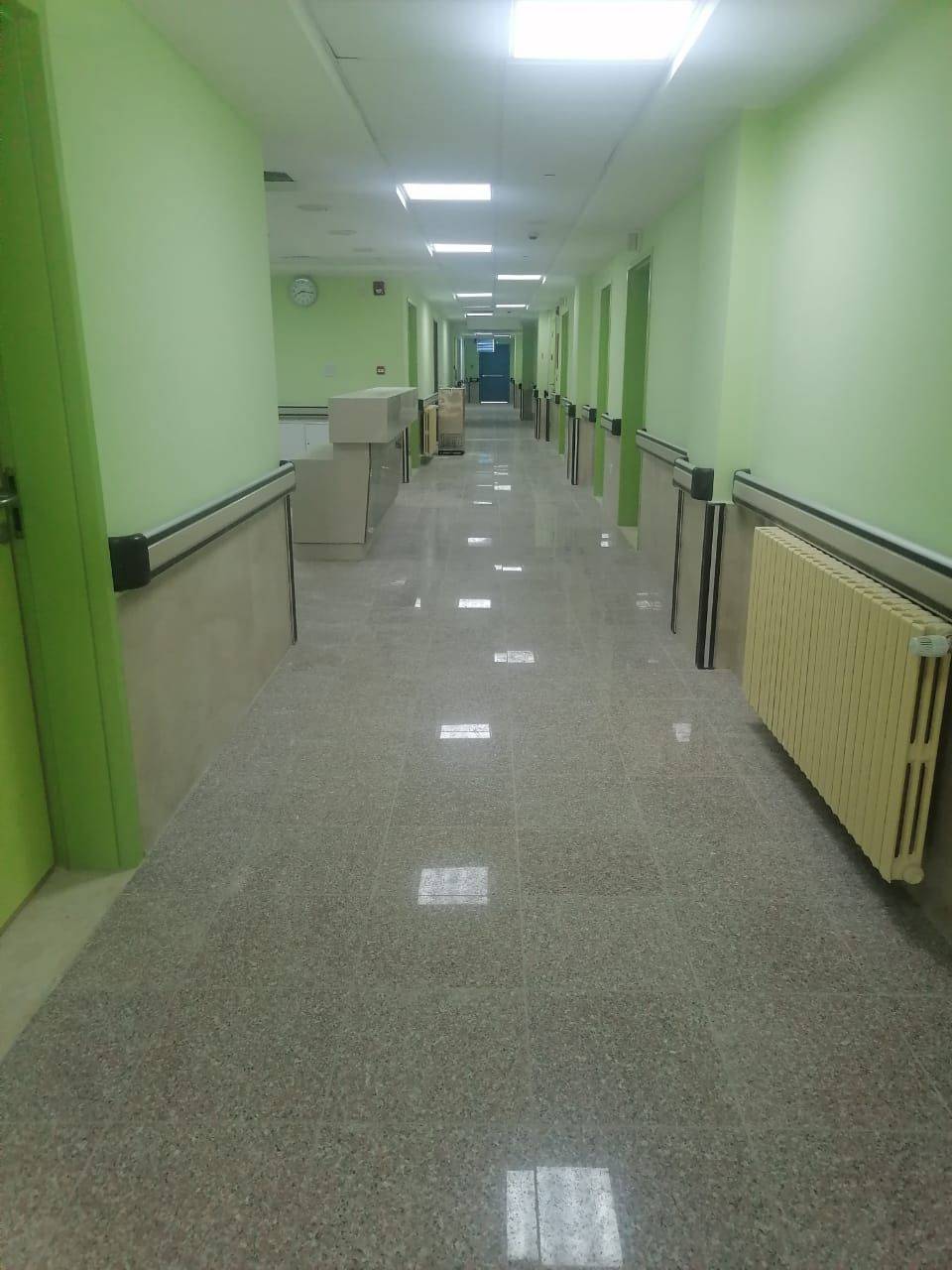 وقالت الوزارة في بيان صحفي صادر عن وحدة الإعلام والإتصال، إن العمل في المشروع تضمن استلام 3 طوابق رئيسية من المبنى الرئيسي وبمساحة إجمالية تبلغ حوالي 12 الف م2، مشيرًة إلى أن الطوابق التي تم استلامها تتضمن أقسام العيادات بمختلف الاختصاصات، حيث تتضمن 16 عيادة اختصاص من أمومة وطفولة وقلب وأنف وأذن وحنجرة وعيون وأسنان ومختبرات فرعية وسجلات وصيدلية ومحاسبة وغيرها وبواقع 56 غرفة.
