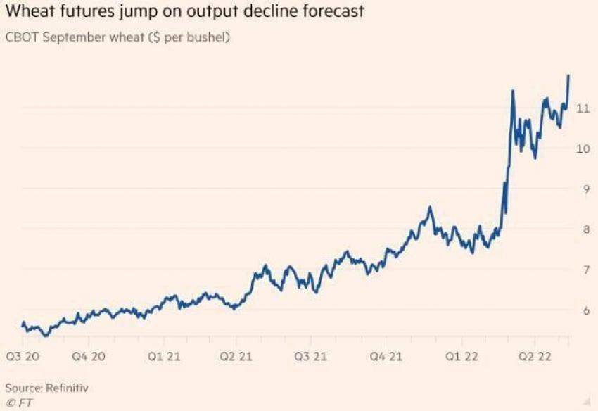 وأشارت تقديرات الإمدادات الأمريكية وارتفاع أسعار القمح يوم الخميس، إلى استمرار تضخم أسعار المواد الغذائية، في وقت وصل فيه مؤشر أسعار الغذاء لمنظمة الأغذية والزراعة التابعة للأمم المتحدة إلى مستويات قياسية بالفعل.