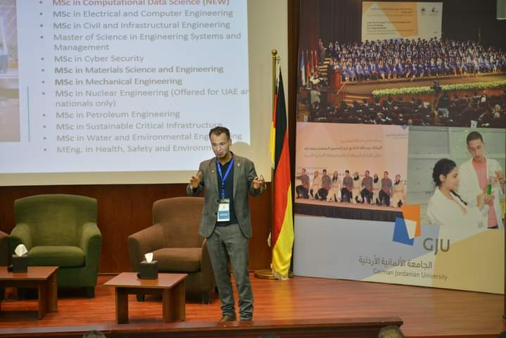 كا قدم ممثلي جامعة خليفة للطلبة وأعضاء الهيئة التدريسية عرضا تقديميا للتعريف بالجامعة وتخصصاتها والمنح المقدمة لطلبة الماجستير والدكتوراه في تخصصات الهندسة والعلوم والطب، مشيرين إلى أن أنها تدمج بين البحث العلمي والتعليم من أجل تطوير العالم ودفع النمو الاقتصادي، وتسعى إلى أن تكون واحدة من الجامعات البحثية الرائدة، حيث تحتضن الكثير من المجالات التي تركز عليها أنشطة البحث العلمي؛ مثل الطاقة المتجددة والفضاء والروبوتات .