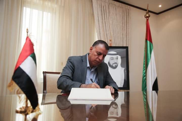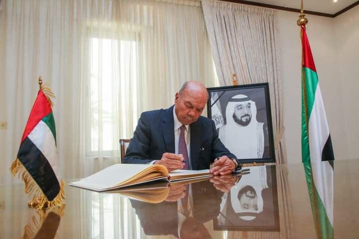 توافدت الفعاليات الرسمية والشعبية وجموع الأردنيين ورؤساء وأعضاء المنظمات والبعثات الدبلوماسية العربية والأجنبية في الأردن إلى مقر إقامة سفير دولة الإمارات في منطقة عبدون بعمان، لتقديم واجب العزاء بوفاة المغفور له بإذن الله صاحب السمو الشيخ خليفة بن زايد آل نهيان رئيس دولة الامارات العربية المتحدة.