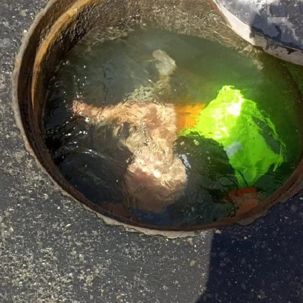 نشرت وزارة المياه على صفحتها الرسمية على الفيسبوك صورا تظهر قيام احد موظفيها بالغطس لحل مشكلة تتعلق بالصرف الصحي وازالة المخلفات من داخل احد المناهل .