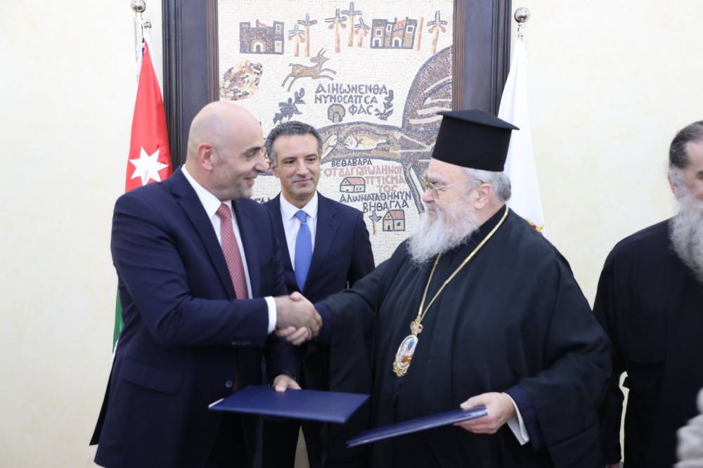 وقعت هيئة تنشيط السياحة الأردنية وكنيسة اليونان الممثلة في المجمع المقدس، في موقع المغطس، اليوم الاحد، اتفاقية "مشروع بروتوكول تعاون"، في مجالات السياحة والثقافة، بحضور وزير السياحة والآثار رئيس مجلس إدارة هيئة تنشيط السياحة نايف حميدي الفايز.