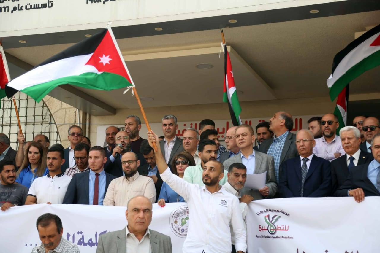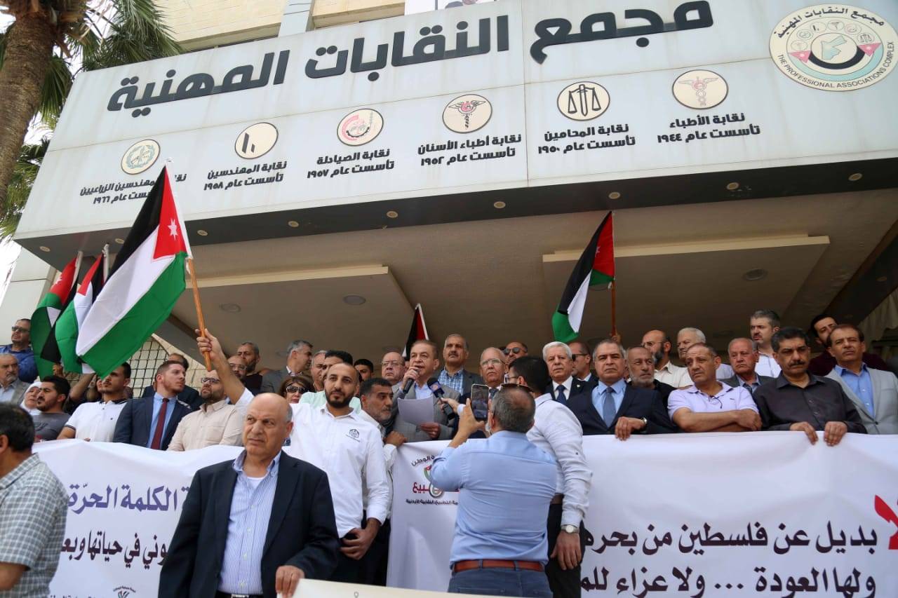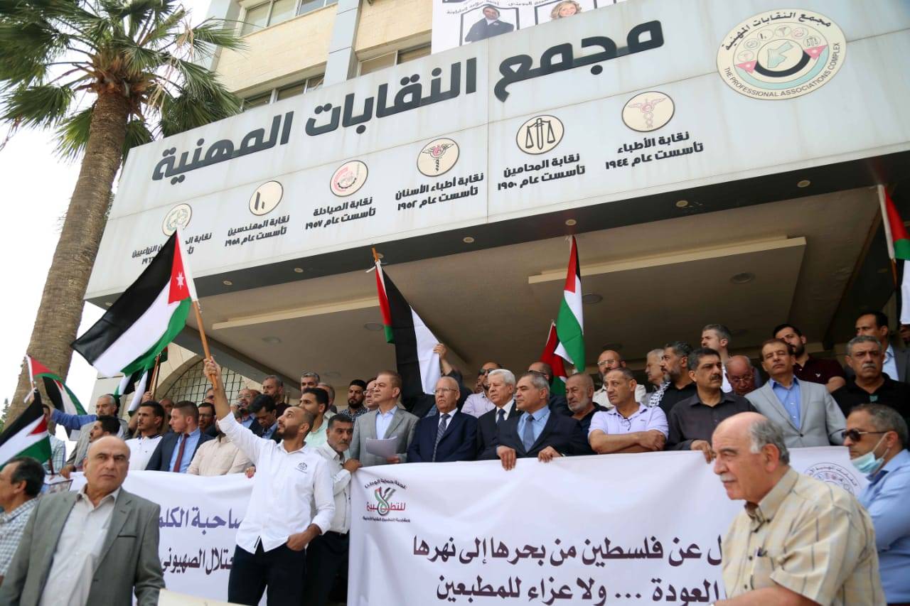 واستهجنت الوقفة الحال التي وصلت اليها بعض الحكومات في الدول العربية من الهرولة نحو التطبيع الذي لا مصلحة له الا تصفية القضية، وفقدان الانتماء والولاء العربي والاسلامي، مشددة على وقوف مجمع النقابات المهنية خلف الاهل في فلسطين الذين ما زالوا يقاتلون بكل قوة لدحر الكيان.