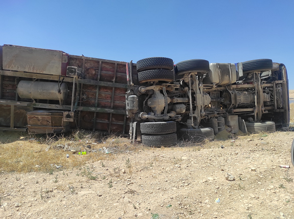انقلاب شاحنة محملة بالقمح على اوستراد الزرقاء جابر