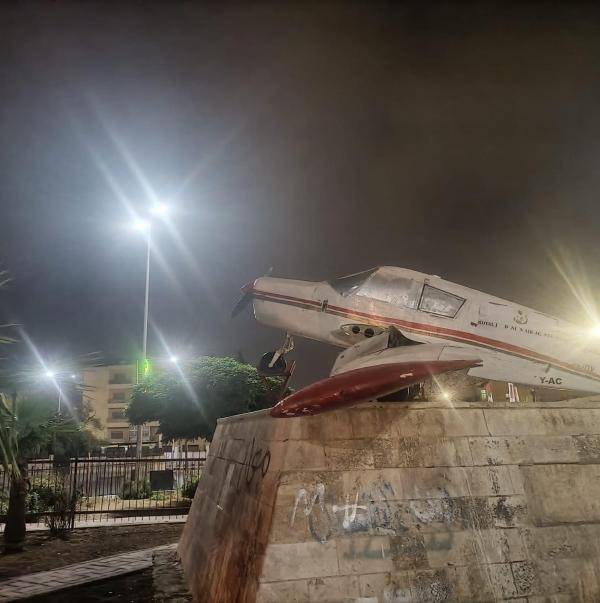 وقالوا في حديثهم بأن دوار الطيارة تعرض منذ فترة الى العبث في الطائرة الموجودة بداخله والتي تعد معلم مدخل اللواء.
