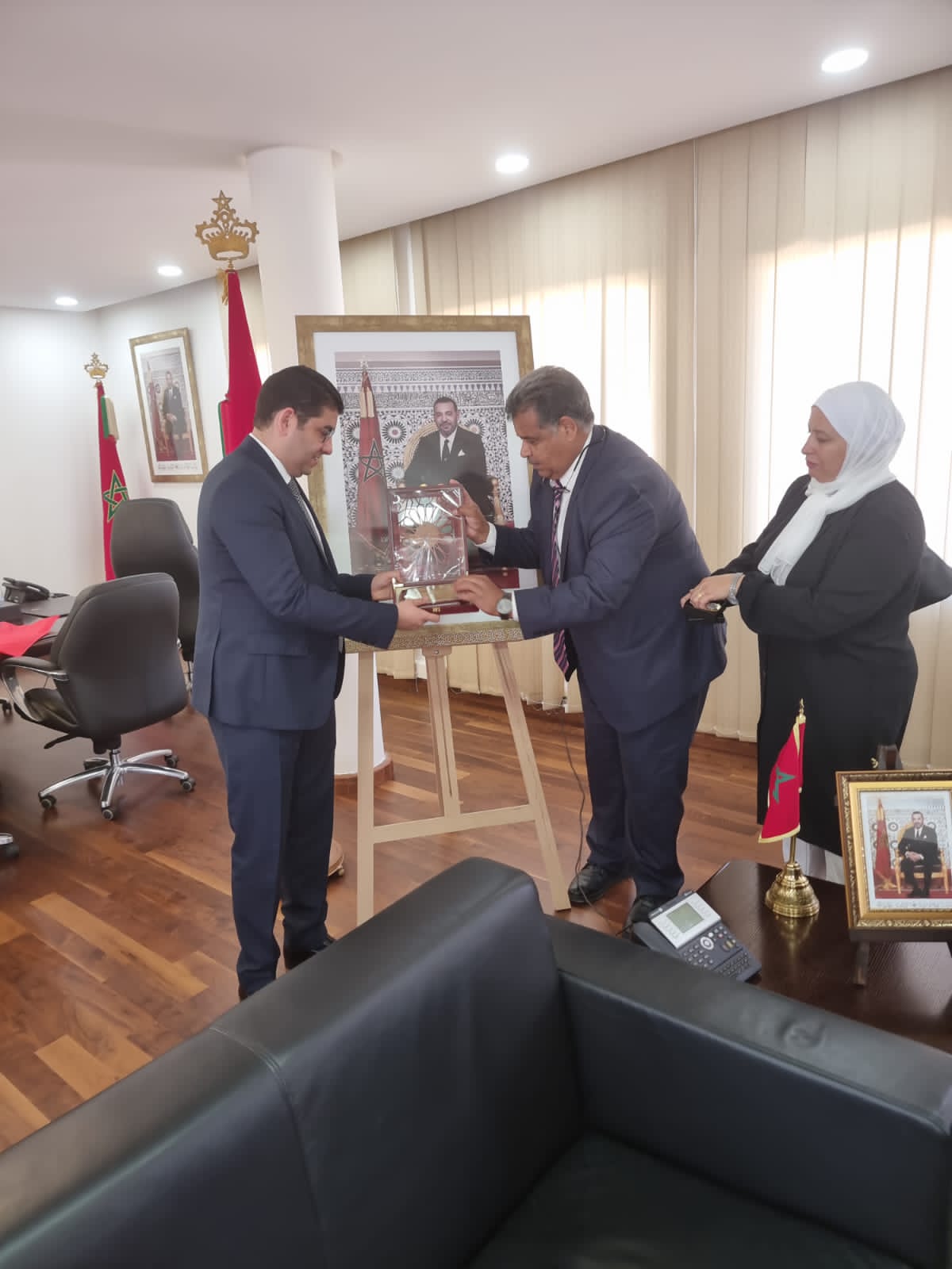 التقى وزير الثقافة والشباب المغربي محمد مهدي بنسعيد بحضور وفود كل من السعودية ومصر والبحرين وقدم الحنيطي درع الجمعية للوزير تقديرا لجهود المغرب في خدمة ذوي الاحتياجات الخاصة.