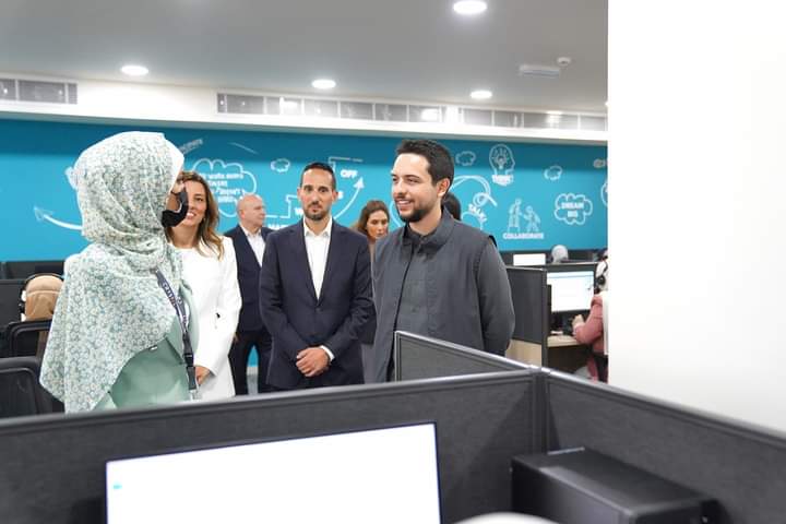 واستمع سمو ولي العهد، خلال جولة في الشركة إلى شرح قدّمه رئيس مجلس إدارة الشركة أيمن المجالي، حول الفرع الجديد الذي يضم مركزاً لتأهيل موظفي خدمات العملاء ومراكز الاتصال وإدارة البيانات.